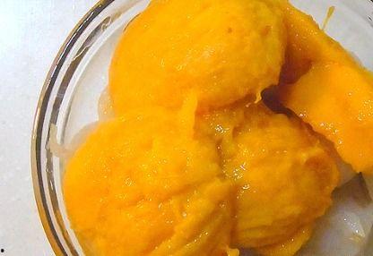 4. 甜品:将蜜瓜和芒果与糯米粉、糖等材料混合,制作成甜品。